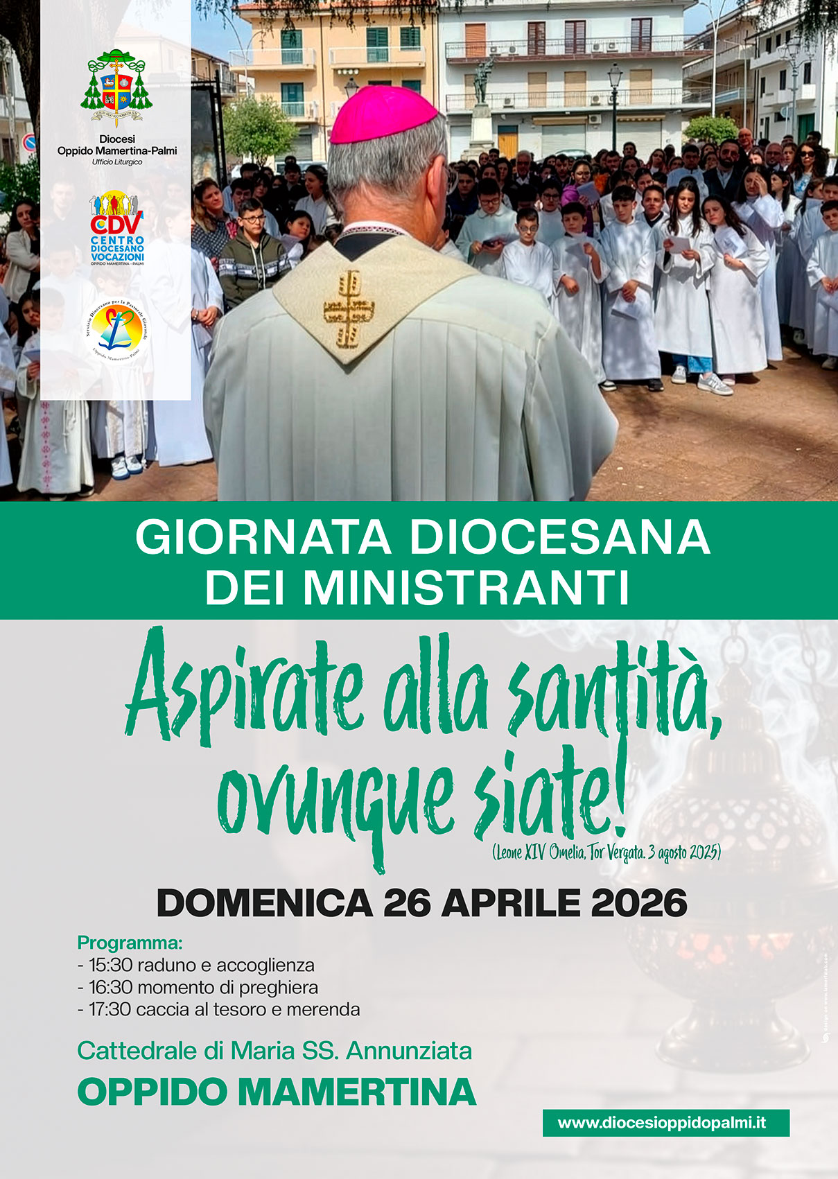 La Diocesi di Oppido Mamertina-Palmi promuove la Giornata Diocesana dei Ministranti, in programma domenica 26 aprile 2026 presso la Cattedrale di Maria SS. Annunziata in Oppido Mamertina.
