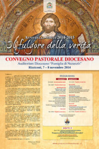 come già il 4 ottobre 2013 in comunione di preghiera e di affetti con il Santo Padre, pellegrino ad Assisi, ci trovammo a Rizziconi, presso l’Auditorium Diocesano “Famiglia di Nazareth” nel Convegno Pastorale per proseguire il cammino «Dall’Anno Cantiere agli orizzonti della Nuova Evangelizzazione», così ancora uniti a Papa Francesco, in questi giorni a guida del Sinodo sulla Famiglia nel mondo contemporaneo, ci prepariamo ad aprire l’Anno Pastorale 2014-2015.
