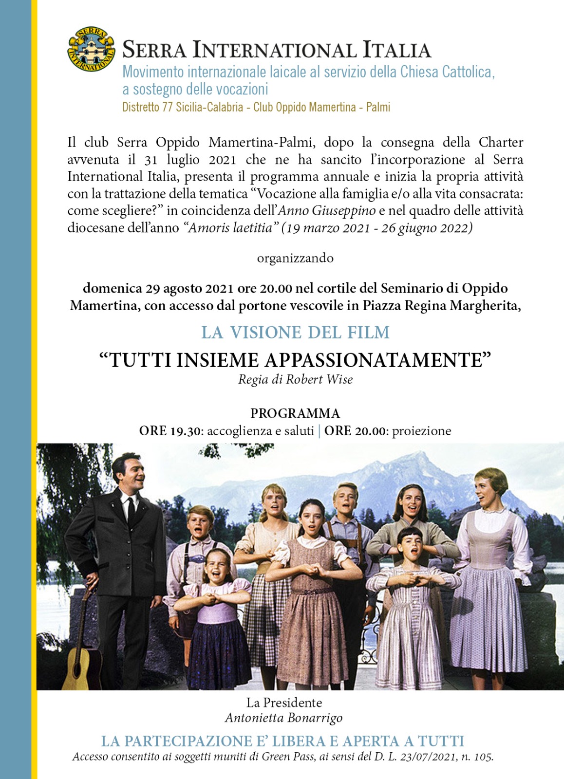 Visione del Film “tutti appassionatamente” promossa dal Serra Club presso il Cortile del Seminario Vescovile di Oppido Mamertina