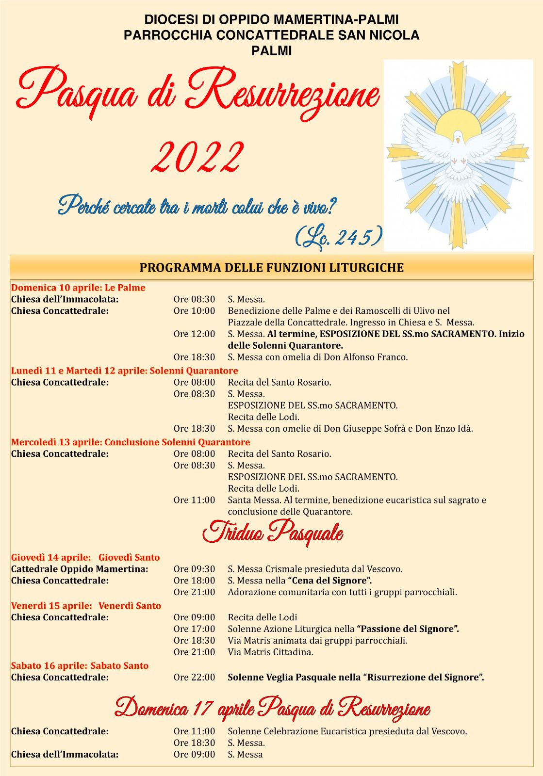 Celebrazione Eucaristica presieduta dal Vescovo presso la Chiesa Concattedrale di Palmi