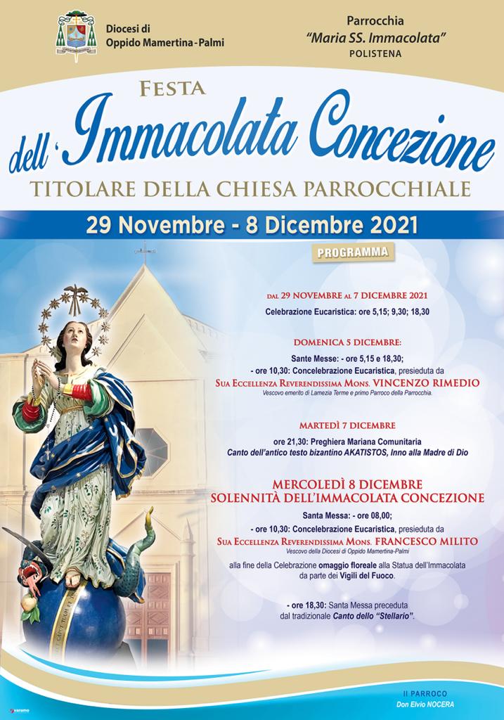 Celebrazione Eucaristica presieduta da S. E. Mons. Francesco Milito presso la Parrocchia “Maria SS. Immacolata” per la festa della Patrona