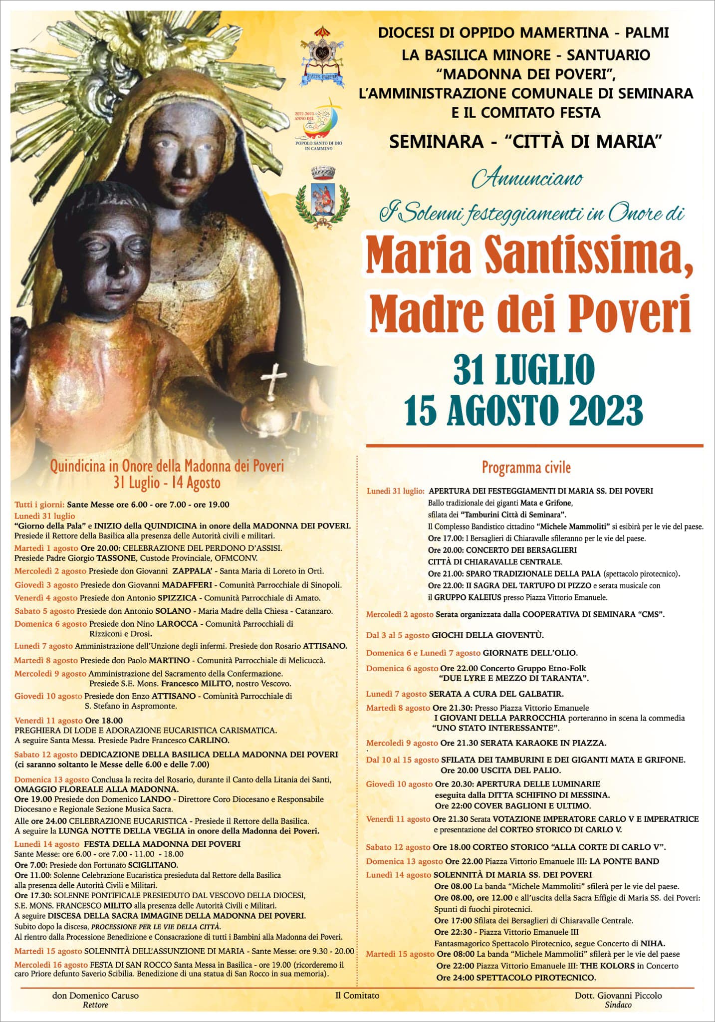 Celebrazione Eucaristica presieduta da S. E. Mons. Francesco Milito per la Madonna dei Poveri